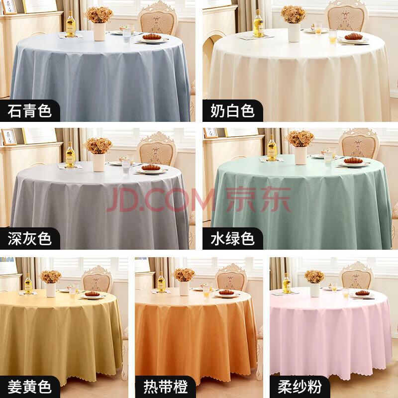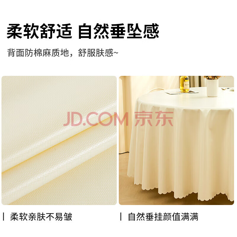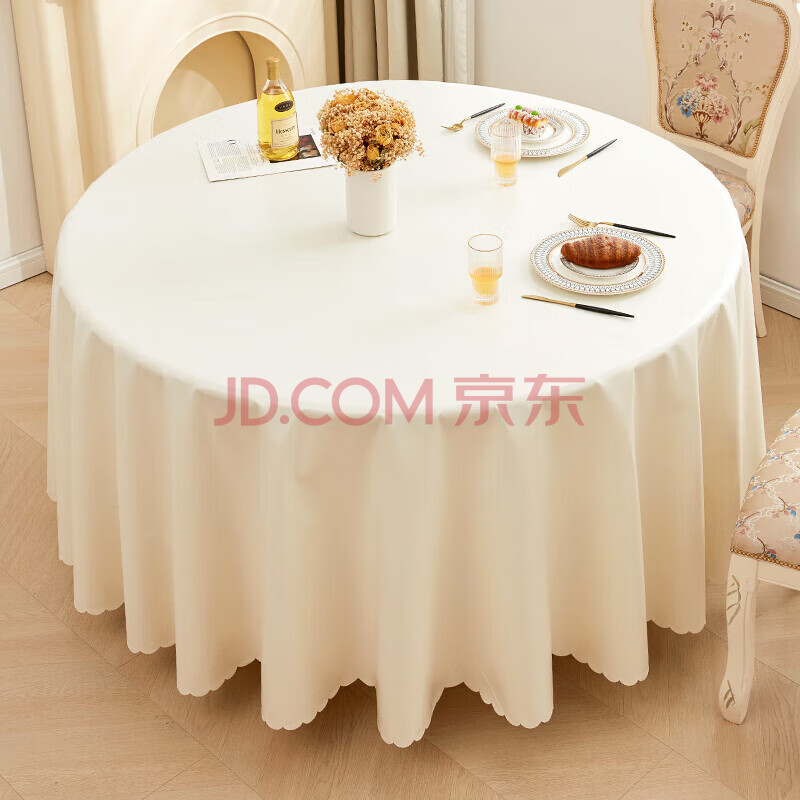 商品相册:钟爱一生桌布圆形防水防油酒店餐厅食堂大圆桌台布TPU奶白色 圆直径220cm第