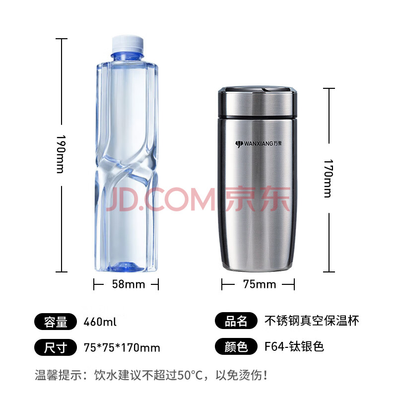 商品相册:万象(WANXIANG)保温杯316不锈钢内胆460ML商务办公带茶漏大容量弧形泡茶杯第