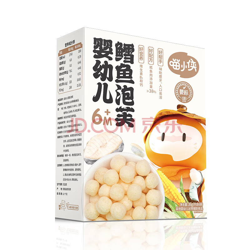商品相册:喵小侠 鳕鱼泡芙 儿童零食婴幼儿6个月婴标宝宝零食泡芙球辅食条 36g第