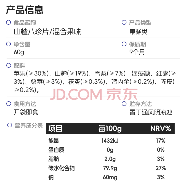 商品相册:喵小侠 山楂八珍片混合果味 宝宝零食添加鸡内金儿童即食独立小包装 60g第