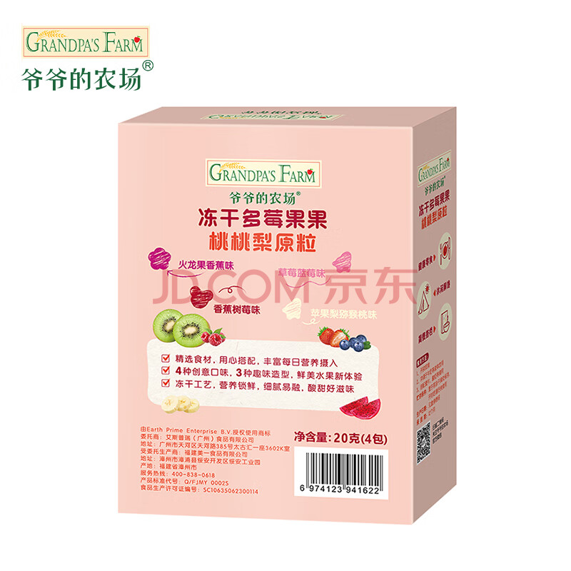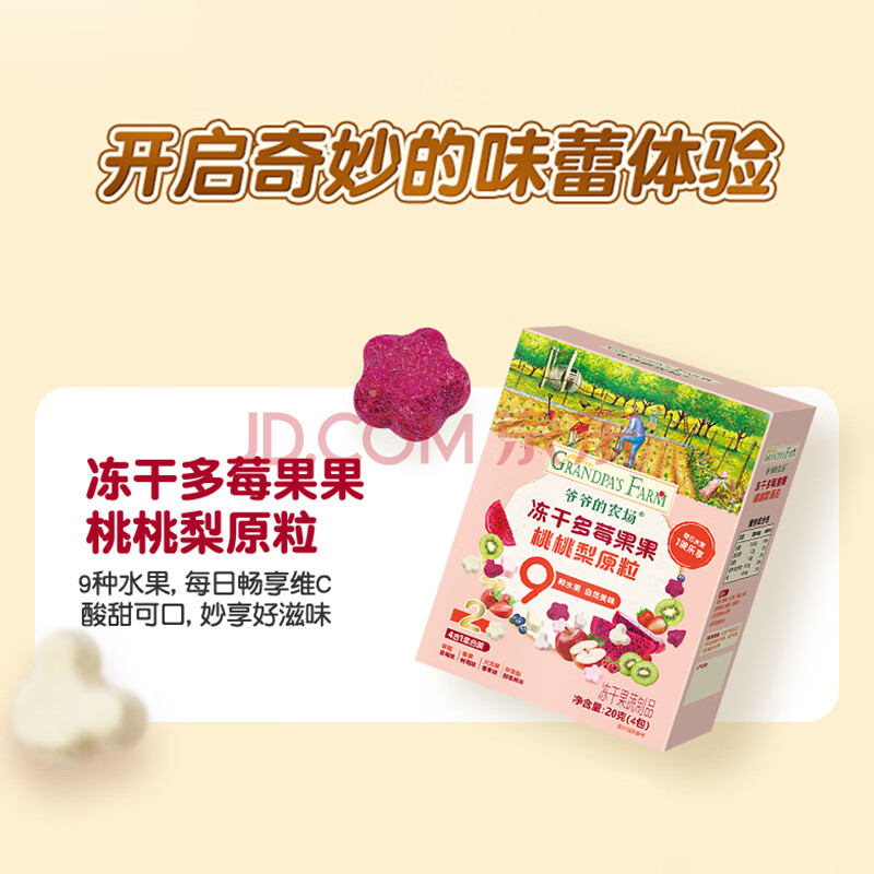 商品相册:爷爷的农场多莓果果桃桃梨原粒 宝宝儿童零食 溶豆水果粒20g第