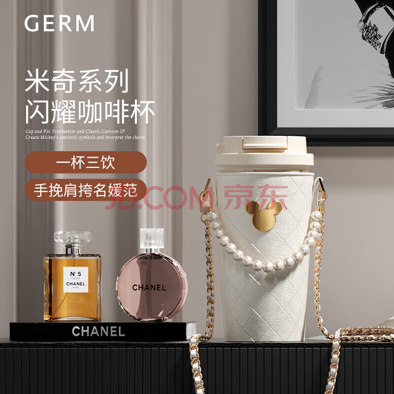 商品相册:格米(germ)迪士尼闪耀保温杯女双饮咖啡吸管水杯大容量车载杯子500ml白奢金第