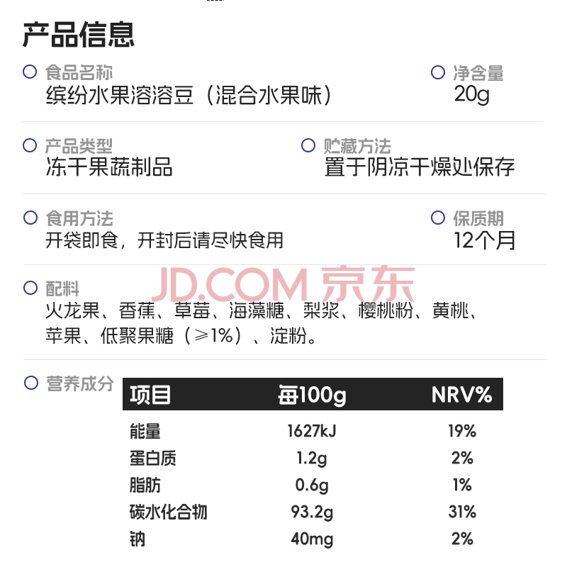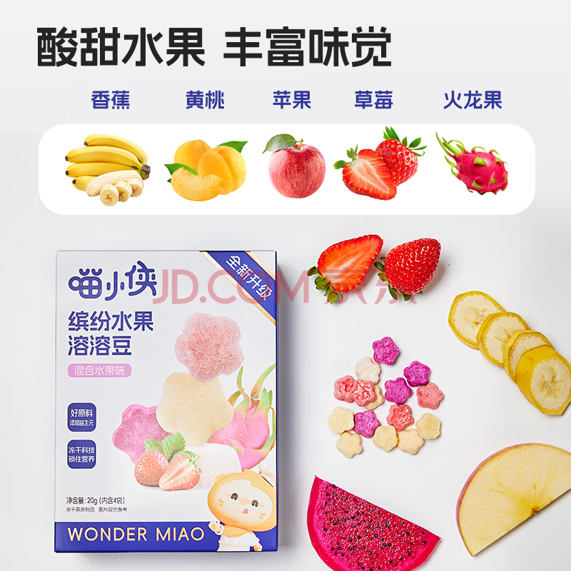 商品相册:喵小侠 缤纷水果溶溶豆 宝宝儿童零食 混合水果味 易吞咽健康小包装 20g第