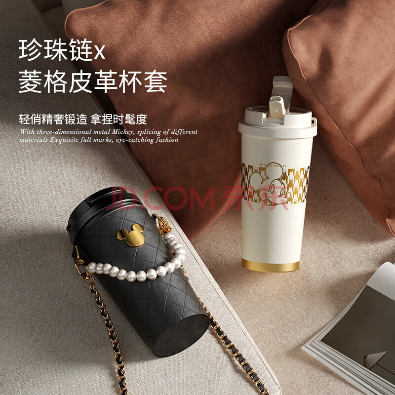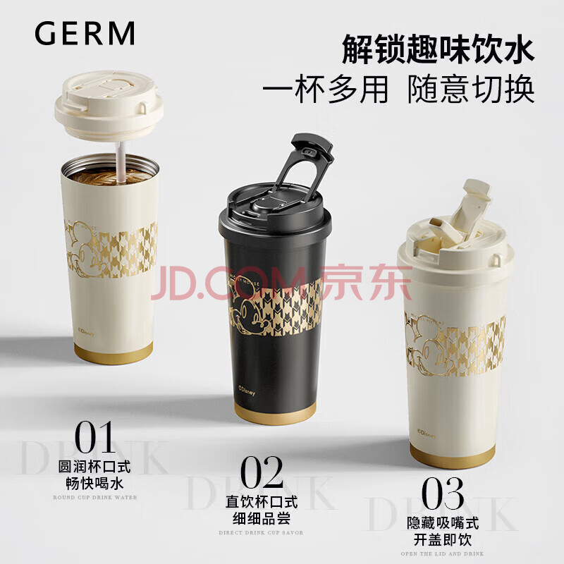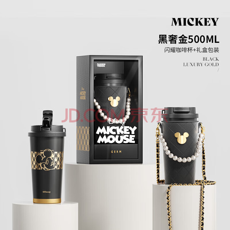 商品相册:格米(germ)迪士尼闪耀保温杯女双饮咖啡吸管水杯大容量车载杯子500ml黑奢金第