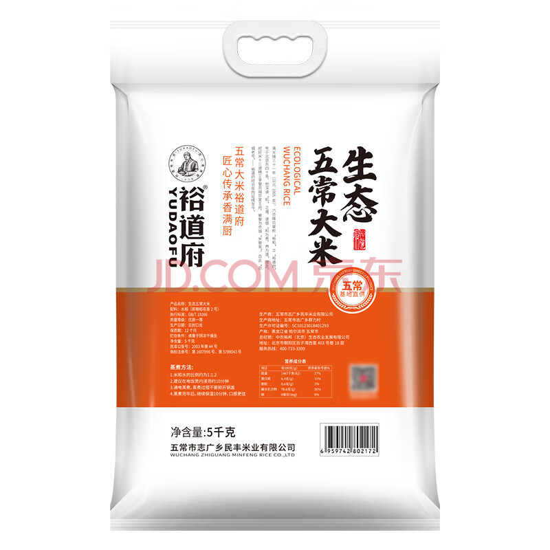 商品相册:裕道府 五常大米 生态种植原粮稻花香2号 东北大米 5kg第