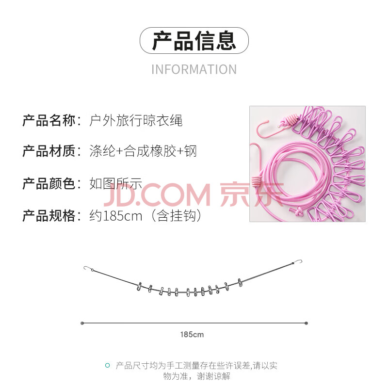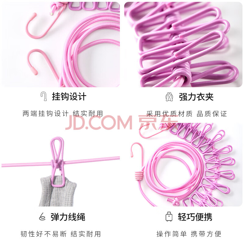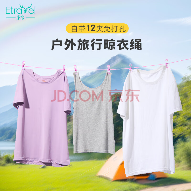 商品相册:易旅晾衣绳出差旅行晒衣绳户外旅游用品晾晒绳子宿舍免打孔带12个夹子第