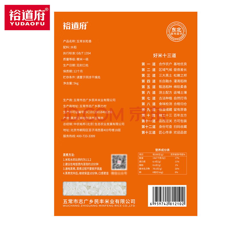 商品相册:裕道府 来碗好饭 五常长粒香 东北大米 5kg第