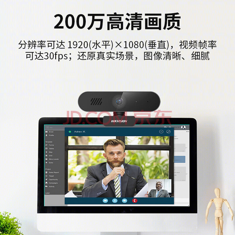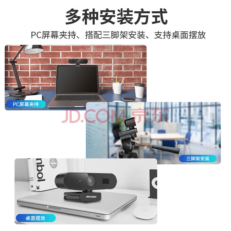 商品相册:HIKVISION海康威视电脑摄像头200万高清USB自动聚焦内置麦克风扬声器网课家用直播视频会议笔记本聊天E12Sa第