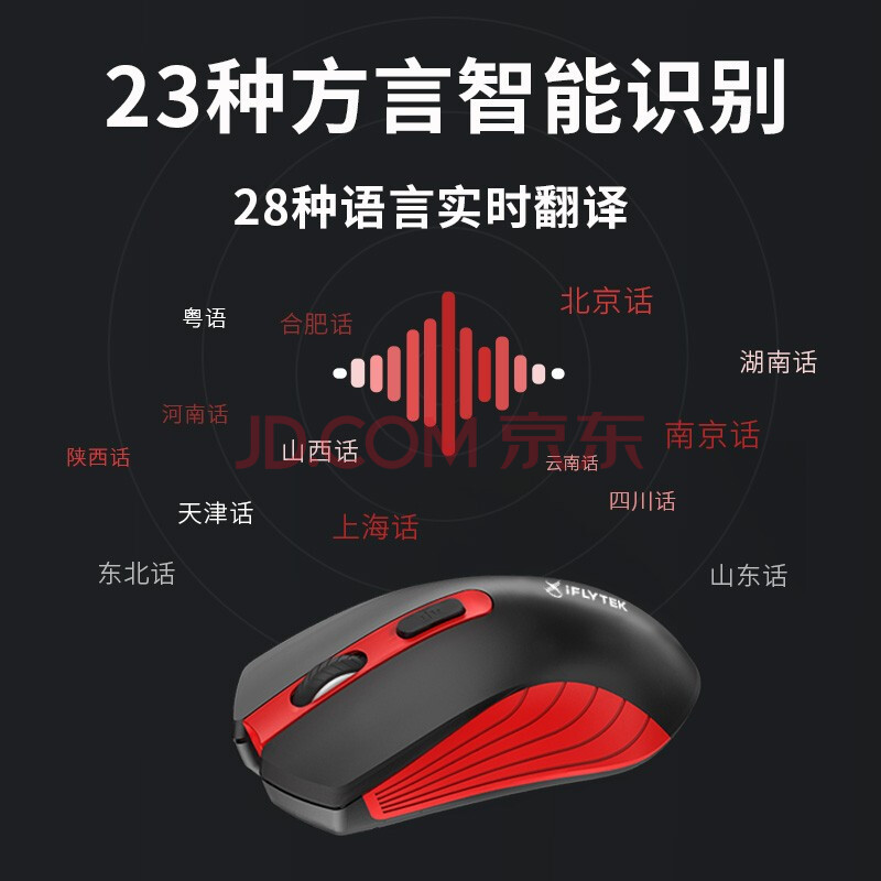 商品相册:科大讯飞无线蓝牙鼠标M210 办公鼠标 无线外设 人体工学鼠标 舒适握感 智能语音输入打字翻译 黑红第