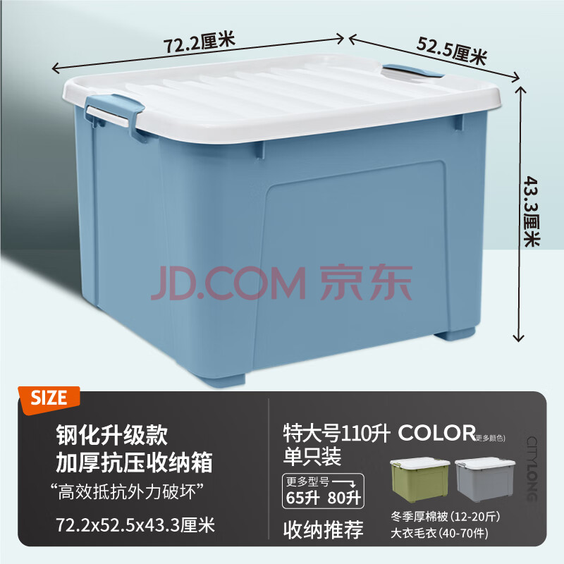 商品相册:禧天龙塑料收纳箱钢化升级款储物箱抗压衣物车载整理箱 110L石青1个装第