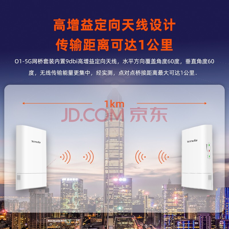 商品相册:腾达O1-5G无线网桥套装1公里监控专用室外CPE远距离点对点传输无线ap第