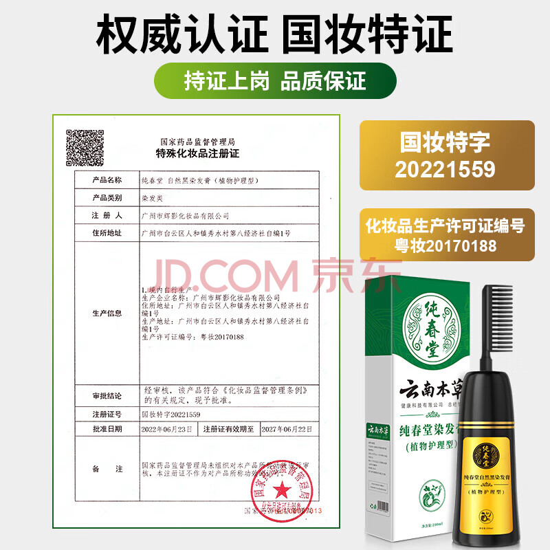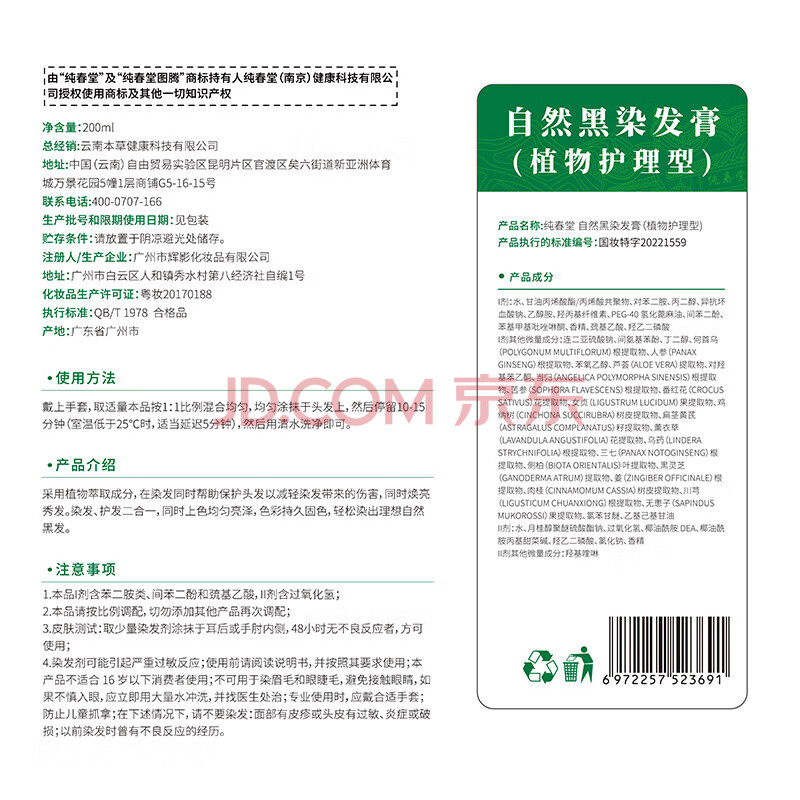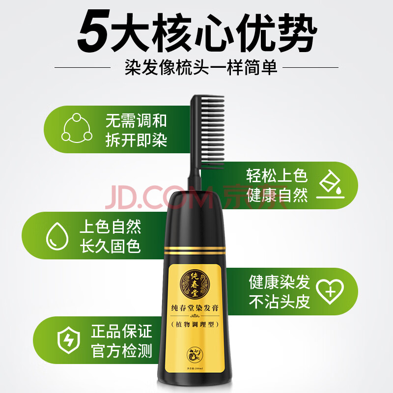 商品相册:纯春堂云南本草染发剂植物一洗黑盖白头发染发膏自然纯黑发男女不沾头皮第
