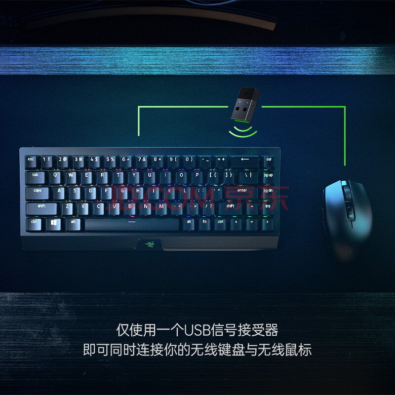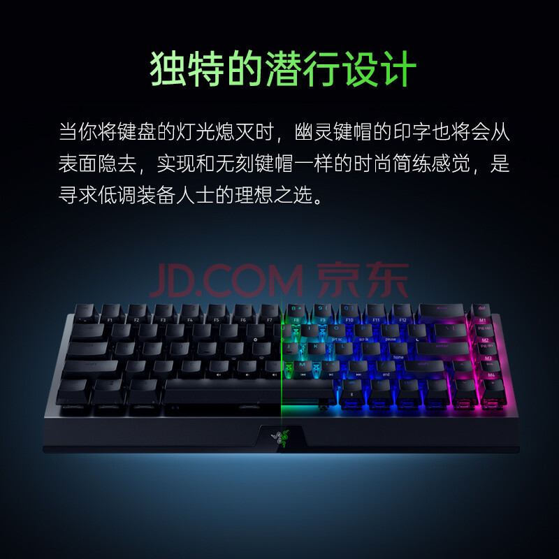 商品相册:雷蛇(Razer)黑寡妇蜘蛛V3迷你无线幽灵键帽版 机械键盘 游戏键盘 68键 无线蓝牙有线键盘 RGB灯效 绿轴第