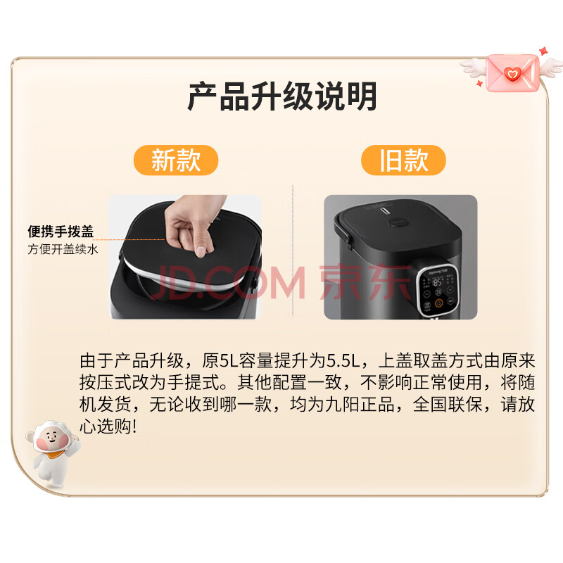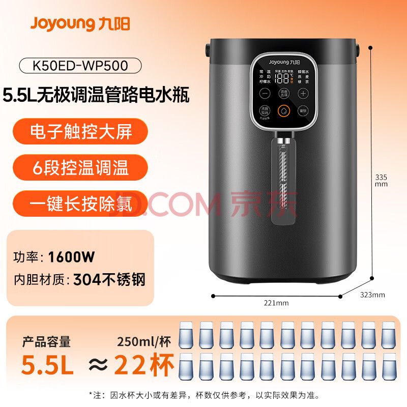 商品相册:九阳(Joyoung)电热水瓶热水壶烧水壶电热水壶 304不锈钢内胆 0胶水 无级调温 5.5L恒温水瓶 K50ED-WP500第