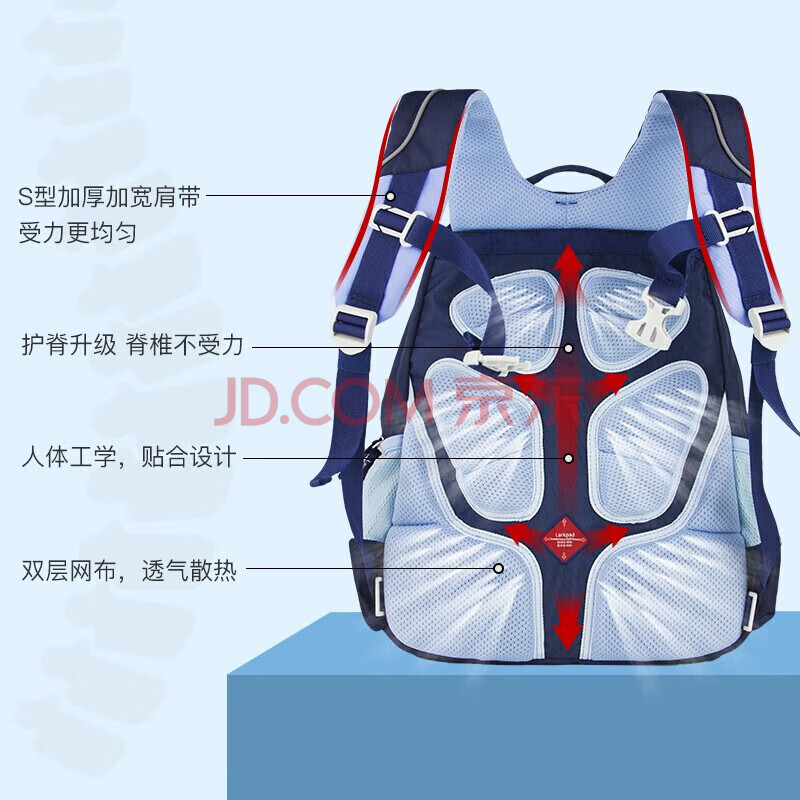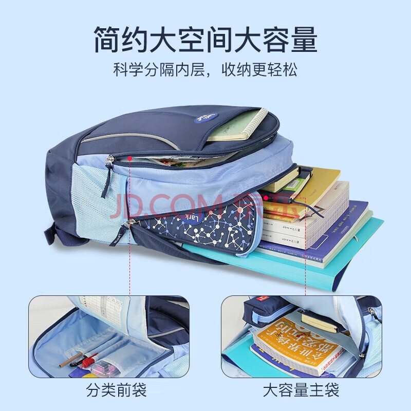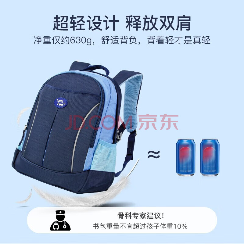 商品相册:Lark Pad小学生书包男女孩1-3年级超轻减负双肩儿童书包 118公爵蓝第