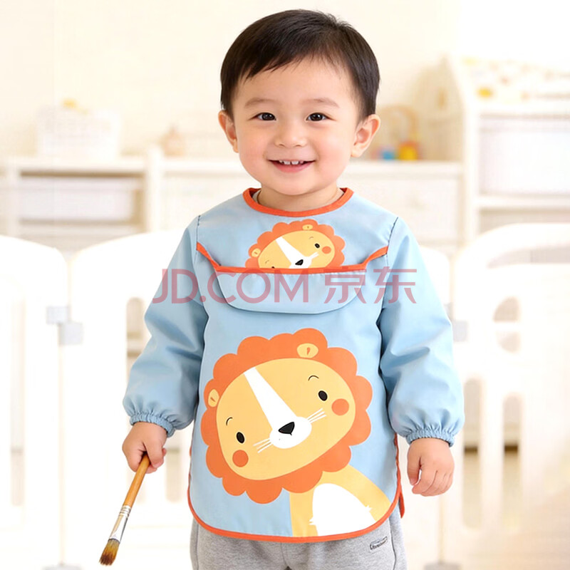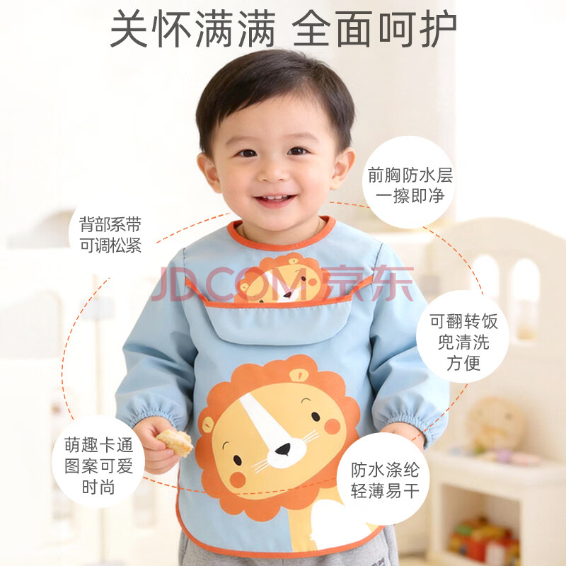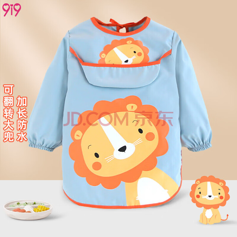 商品相册:9i9宝宝吃饭罩衣防水长袖婴儿童围兜围裙反穿衣幼儿园画衣A150第1张/共9