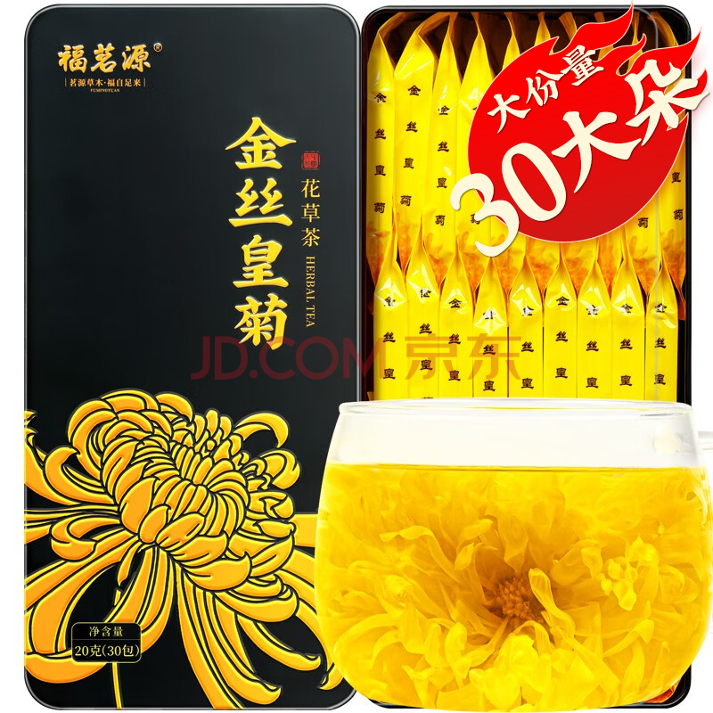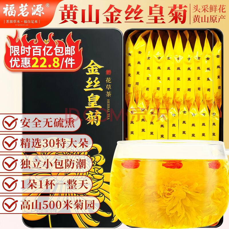 商品相册:福茗源花草茶 菊花茶金丝皇菊 精选特级品质30大朵一朵一杯泡水喝20g第
