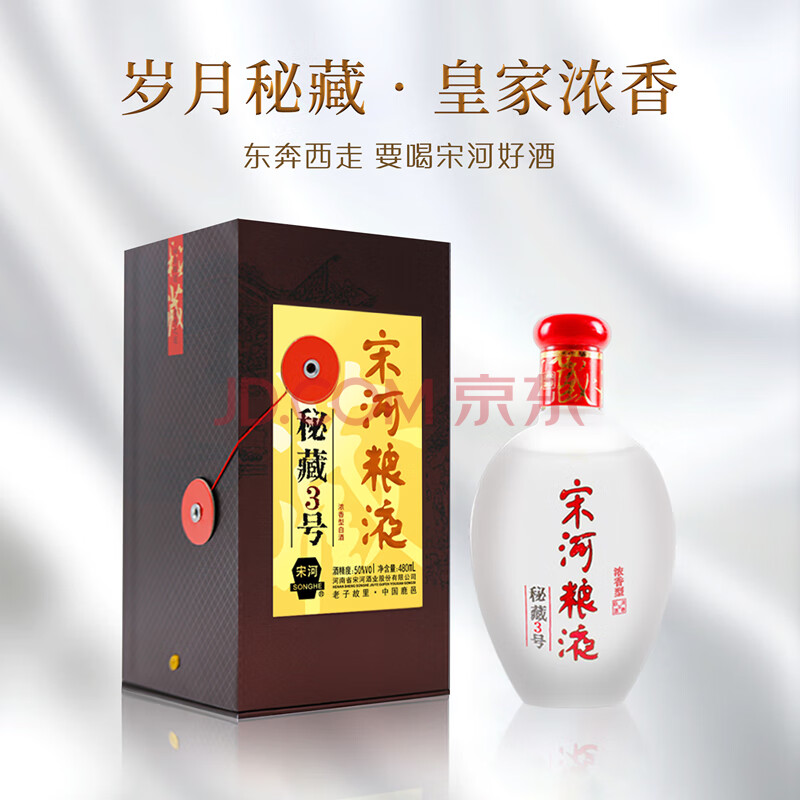 商品相册:宋河粮液 秘藏3号 浓香型白酒 50度 480ml 单瓶装 纯粮酒送礼名酒第