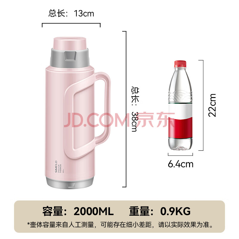商品相册:SIMELO明月保温瓶玻璃内胆304钢盖热水壶加厚学生宿舍热水瓶2.0L优雅粉第