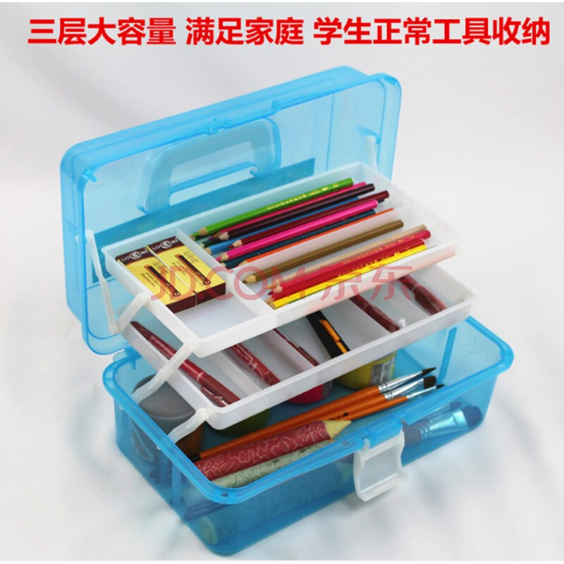 商品相册:芬尚多功能美术工具箱学生手提便携式三层折叠绘画文具收纳箱大号325*185*145mm第