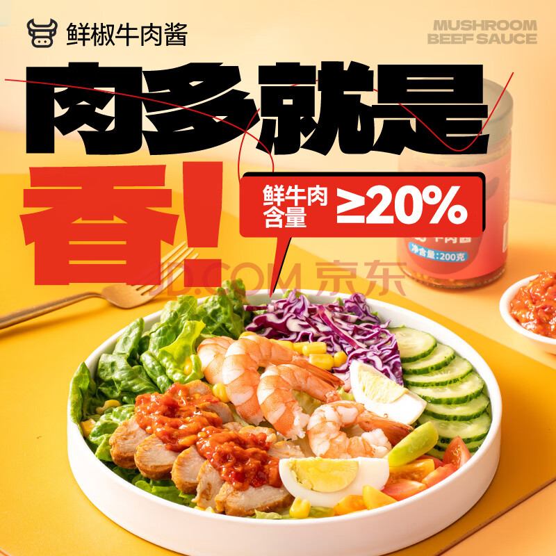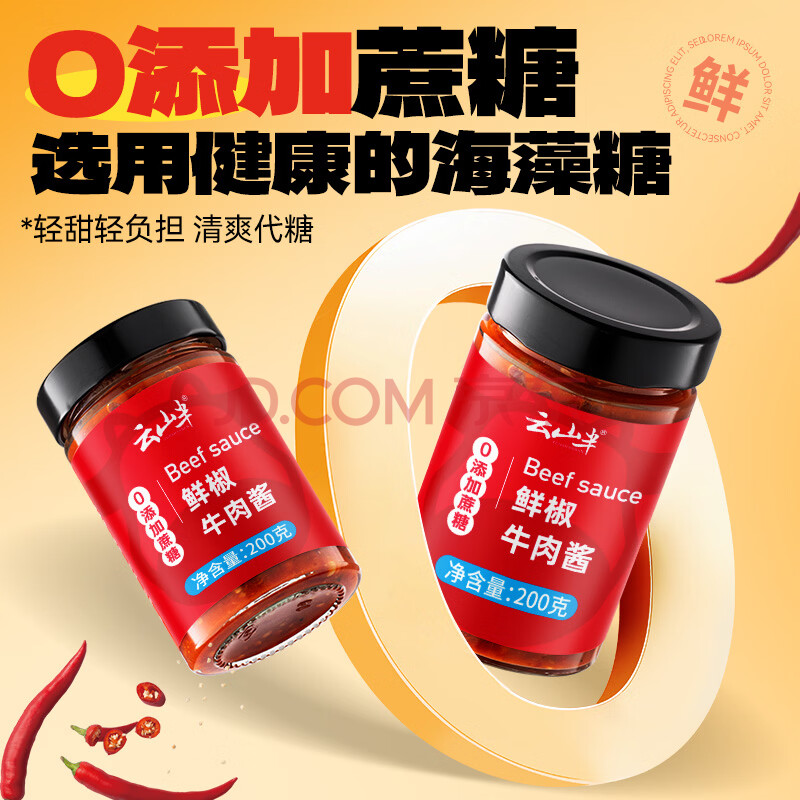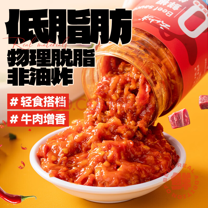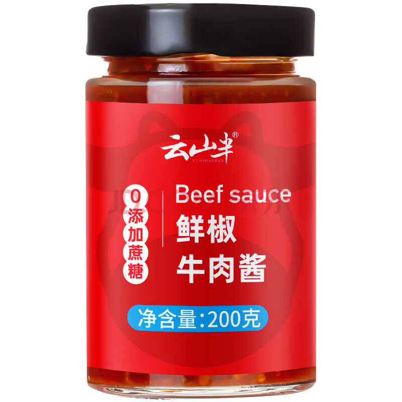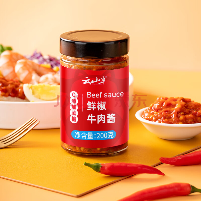 商品相册:云山半低脂肪鲜椒牛肉酱200g 0添加蔗糖牛肉酱 健身轻食沙拉拌面调味酱第