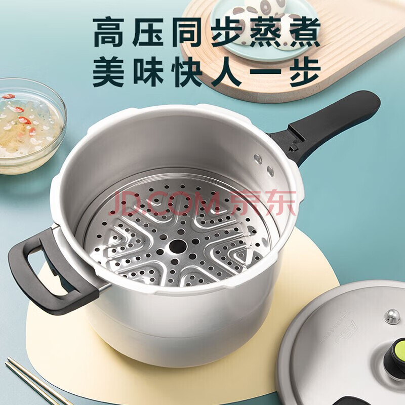 商品相册:爱仕达 ASD 高压锅T型9.6L六保险铝合金压力锅明火专用带蒸篦YL26T2WG第