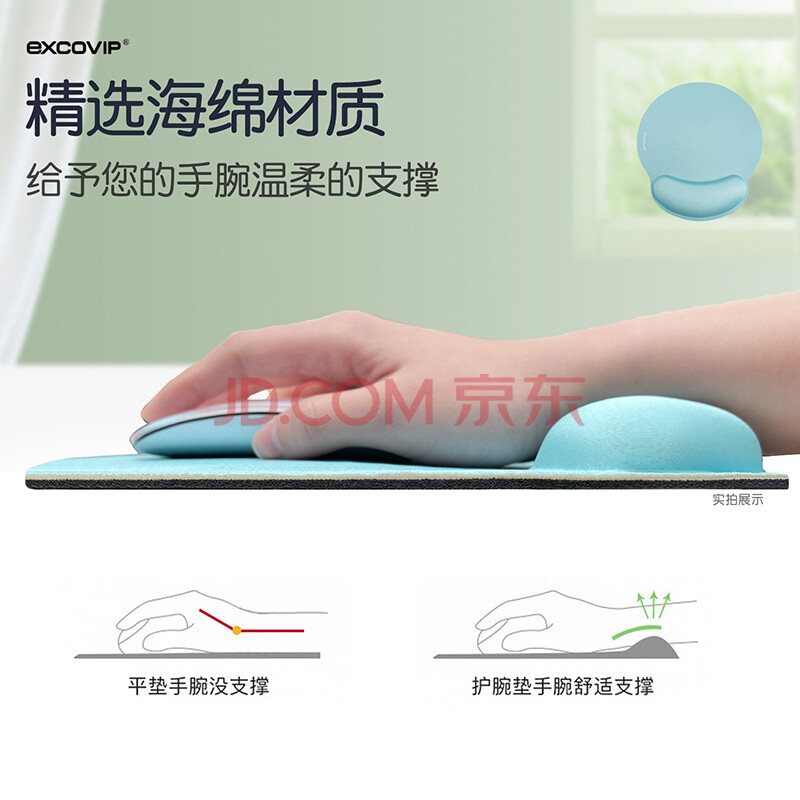 商品相册:宜适酷(EXCO)鼠标垫护腕大号手腕垫 记忆棉腕托垫手笔记本电脑办公游戏加厚大尺寸男女生枕 蓝色9338第
