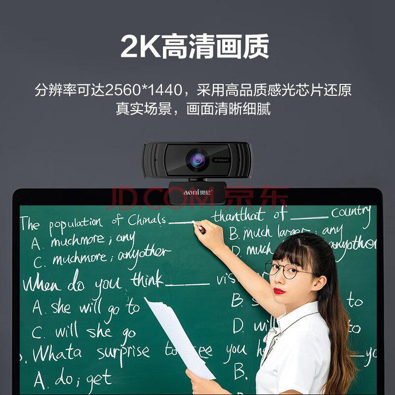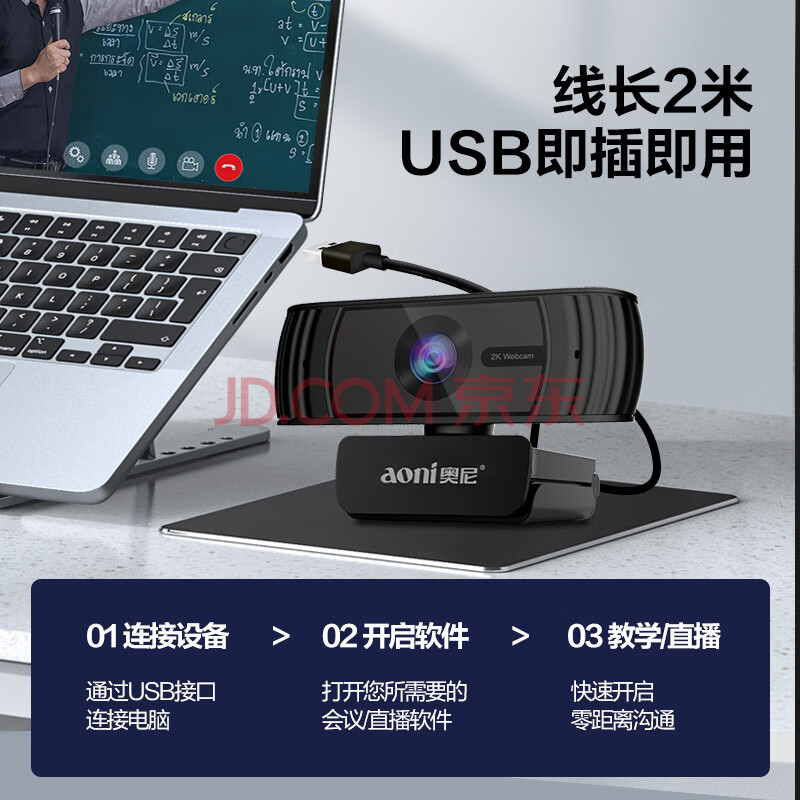 商品相册:奥尼(aoni)电脑摄像头2K高清400万视频USB台式机笔记本电脑 内置双麦克风即插即用 C39第