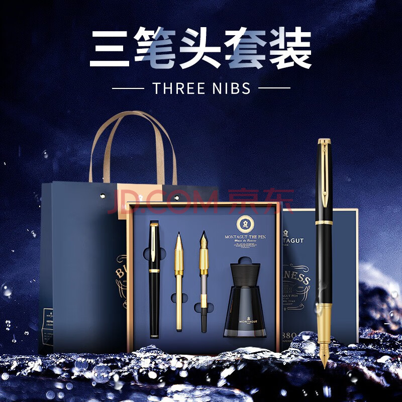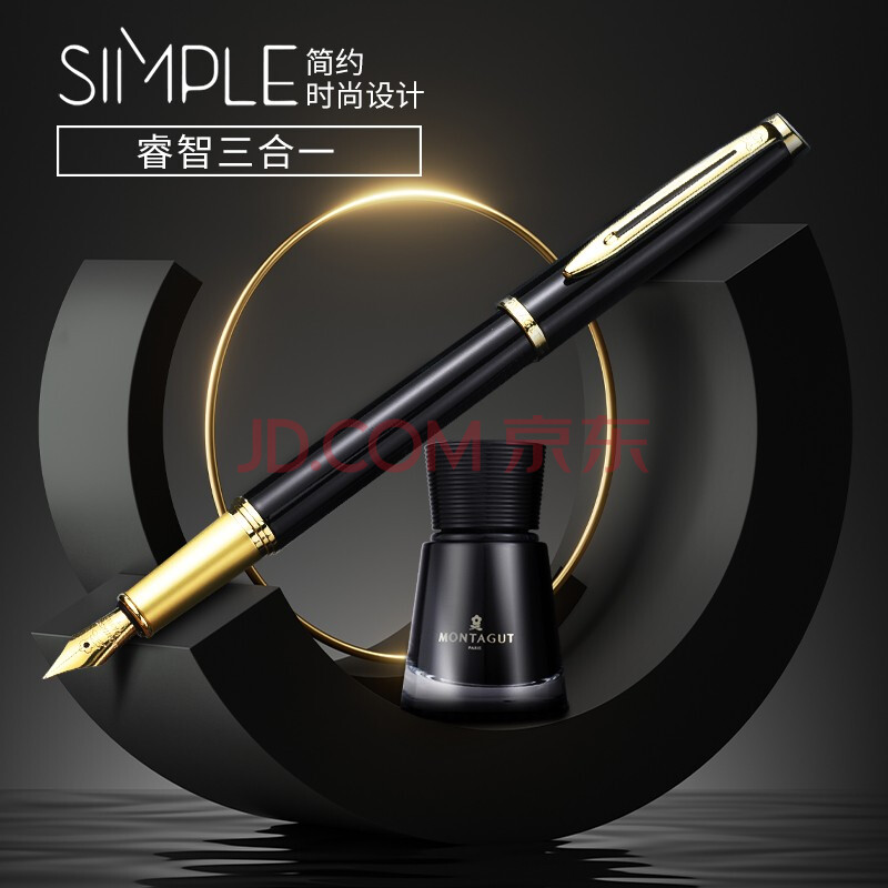 商品相册:梦特娇(MONTAGUT)【马年礼物】钢笔明尖特细笔签字笔男女学生款办公高档礼盒套装睿智系列2007-1黑丽雅第