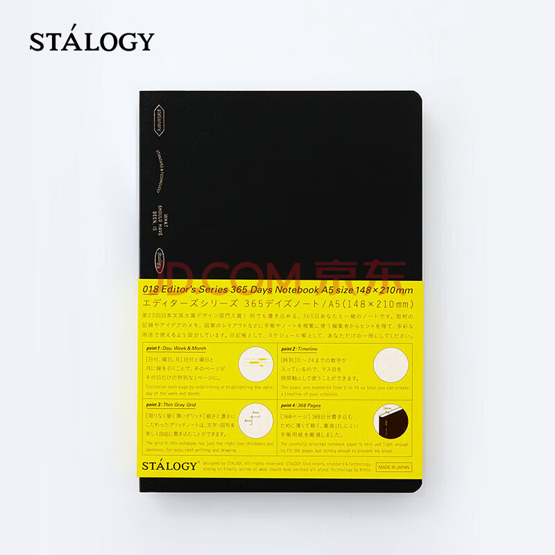商品相册:STALOGY笔记本 日本进口本子 368页高颜值记事本 商务送礼日记本 A5全年册方格 黑色第