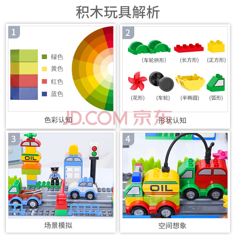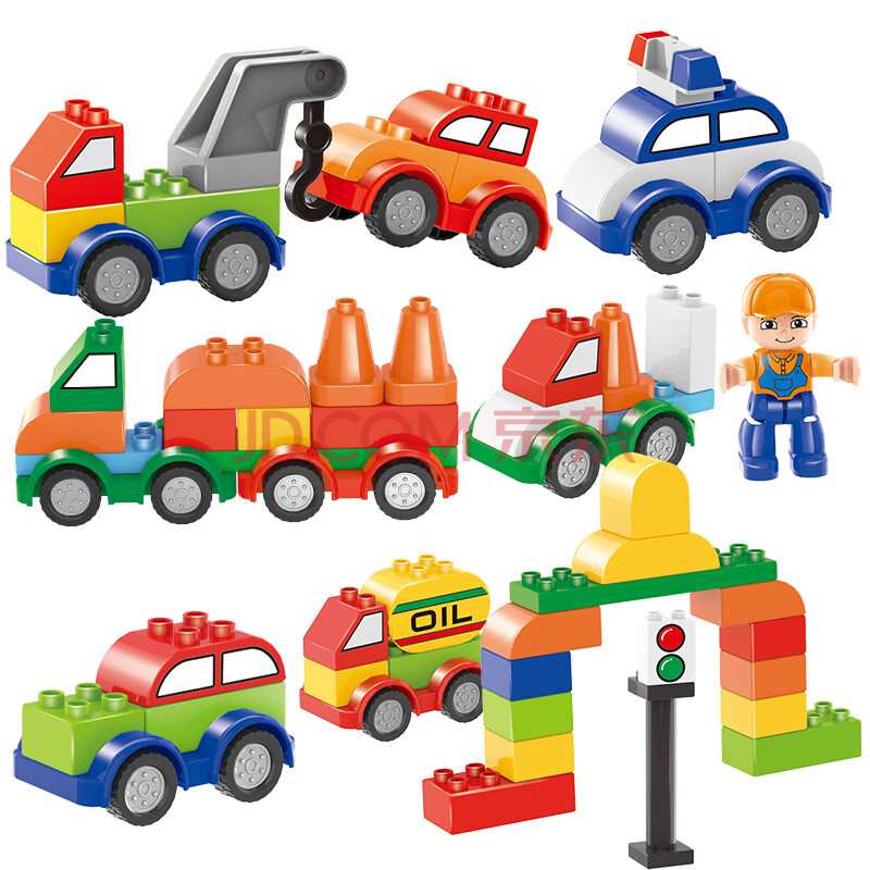 商品相册:糖米 TEMI儿童大颗粒汽车包积木城市交通百变拼插玩具男女孩节日生日礼物第