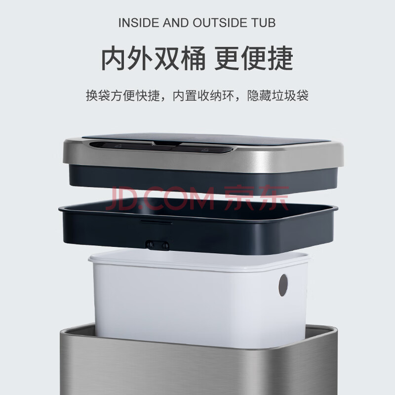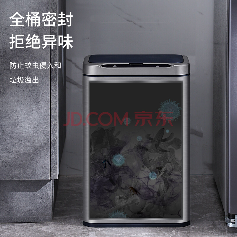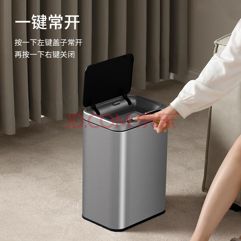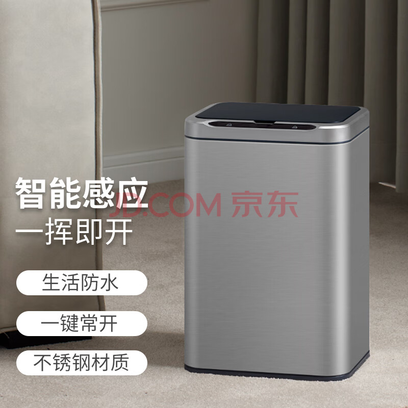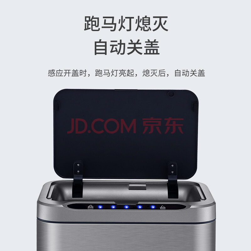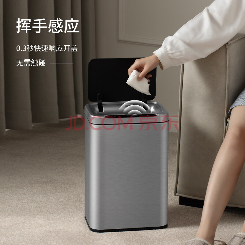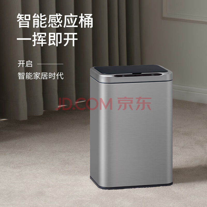 商品相册:洁安惠(JAH)不锈钢智能感应垃圾桶13L 卫生间带盖厕所厨房客厅办公室带垃圾袋第