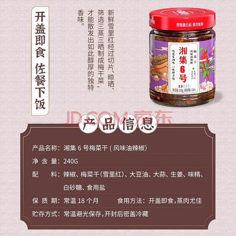 商品相册:湘集6号梅干菜酱 240g下饭菜咸菜榨菜微辣椒酱开瓶即食拌饭炒菜第