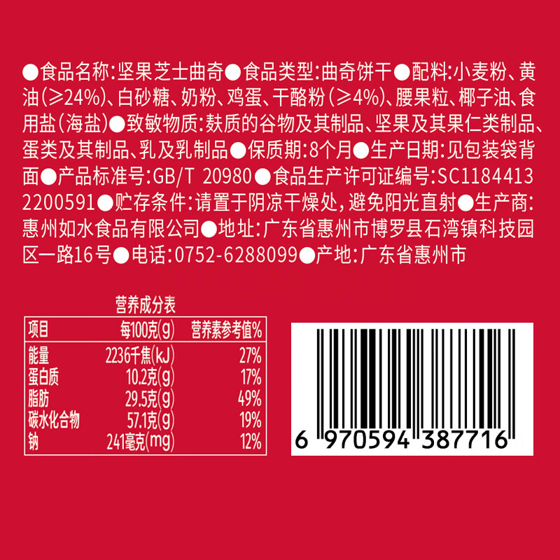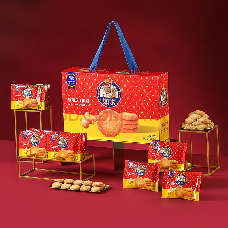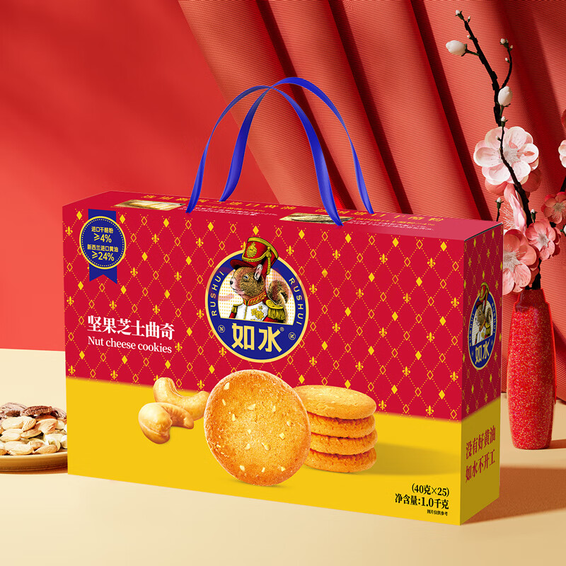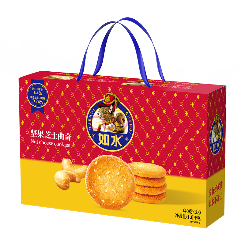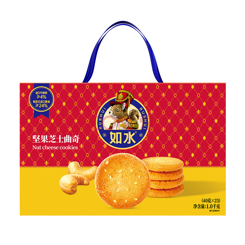 商品相册:如水坚果芝士曲奇饼干1000g/盒 送礼礼物团购礼盒休闲零食独立包装第1张/共8