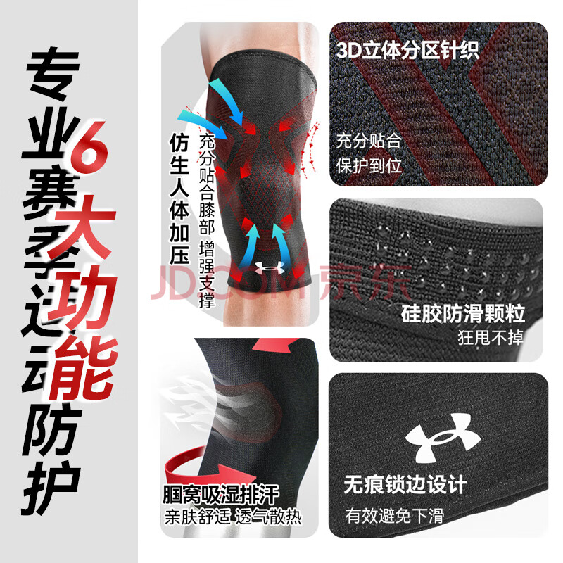 商品相册:安德玛(Under Armour)运动护膝保暖半月板篮球跑步专用髌骨男女老寒腿登山膝盖护具 白L第