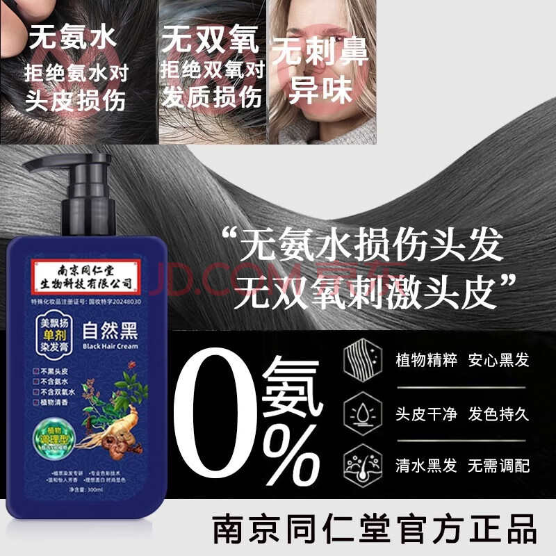 商品相册:同仁堂单剂染发膏植物萃取无氨染发剂不沾头皮盖白染发霜自然黑第