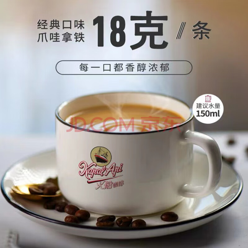 商品相册:火船 三合一速溶咖啡 原装进口 香浓拿铁咖啡原味50条盒装 冲调饮品第
