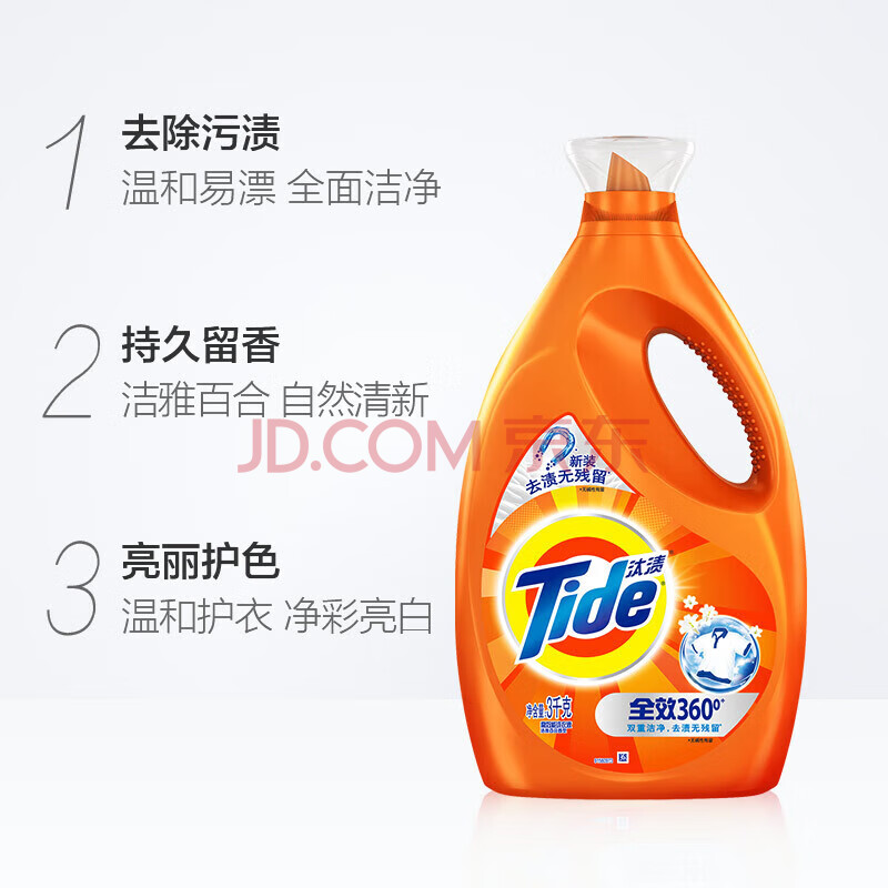 商品相册:汰渍 全效洗衣液 去除深层污渍除菌除螨 洁雅百合香3KG/瓶第