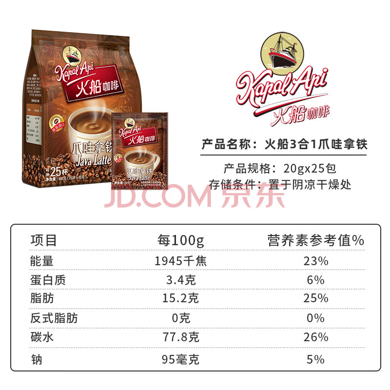 商品相册:火船 特浓三合一速溶咖啡 原装进口 拿铁咖啡25条500g 冲调饮品第