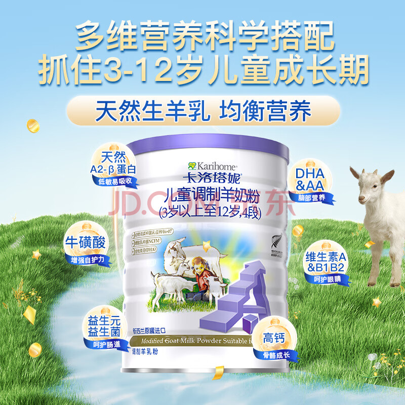 商品相册:卡洛塔妮(karihome)儿童羊奶粉4段900g(3岁以上)维生素A自护力生羊乳新西兰进口第