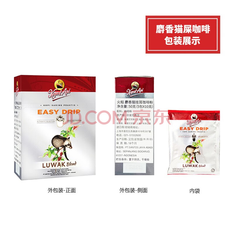商品相册:火船 正宗猫屎挂耳咖啡50g(10g×5包)精品手冲黑咖啡 印尼进口第