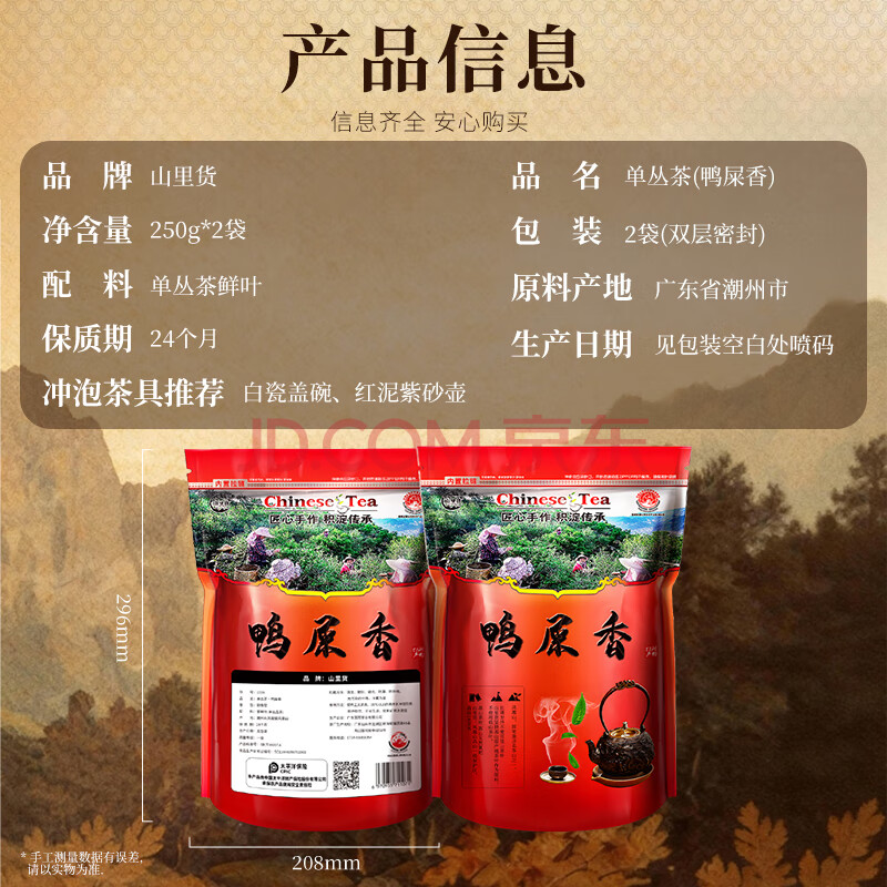 商品相册:山里货(shanlihuo)乌龙茶自饮凤凰单枞鸭屎香一级500g中火袋装口粮茶自饮第