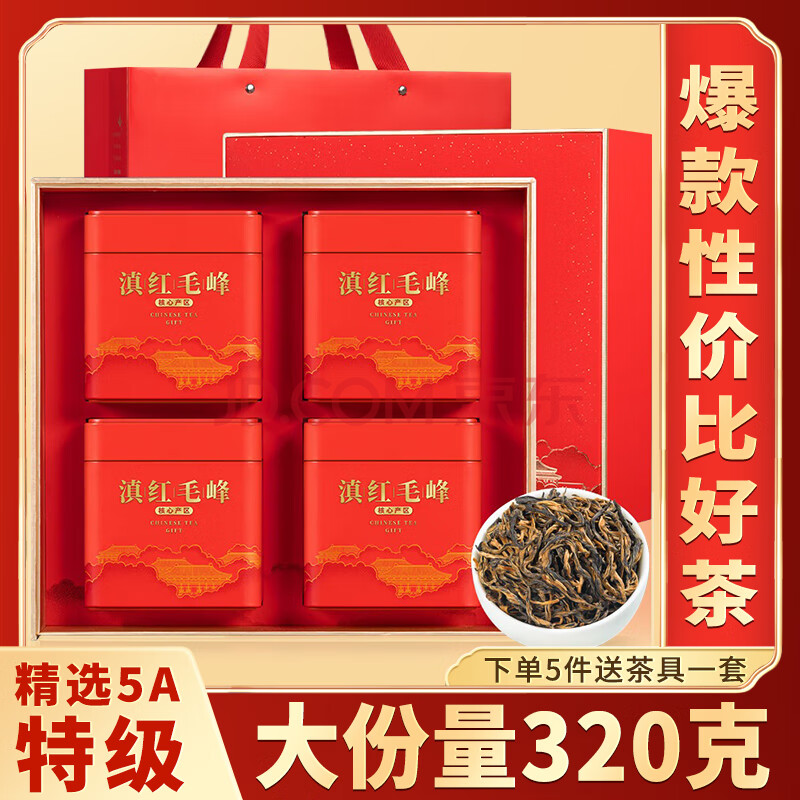 商品相册:福茗源滇红毛峰红茶 浓香特级新茶凤庆滇红茶叶礼盒送长辈领导320g第