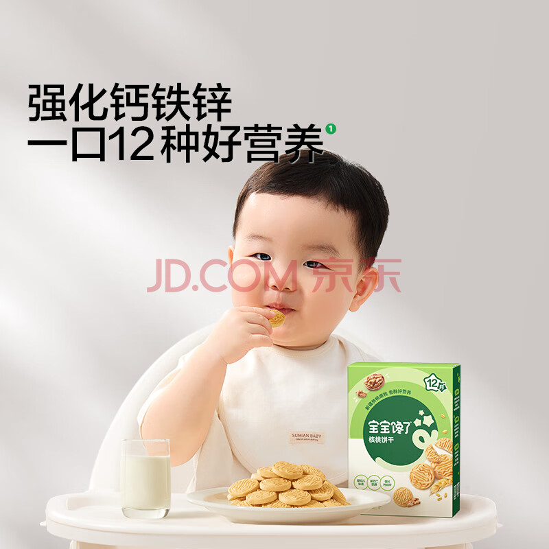 商品相册:宝宝馋了婴幼儿核桃饼干宝宝儿童零食无添加食盐饼干1-2岁强化钙营养65g第