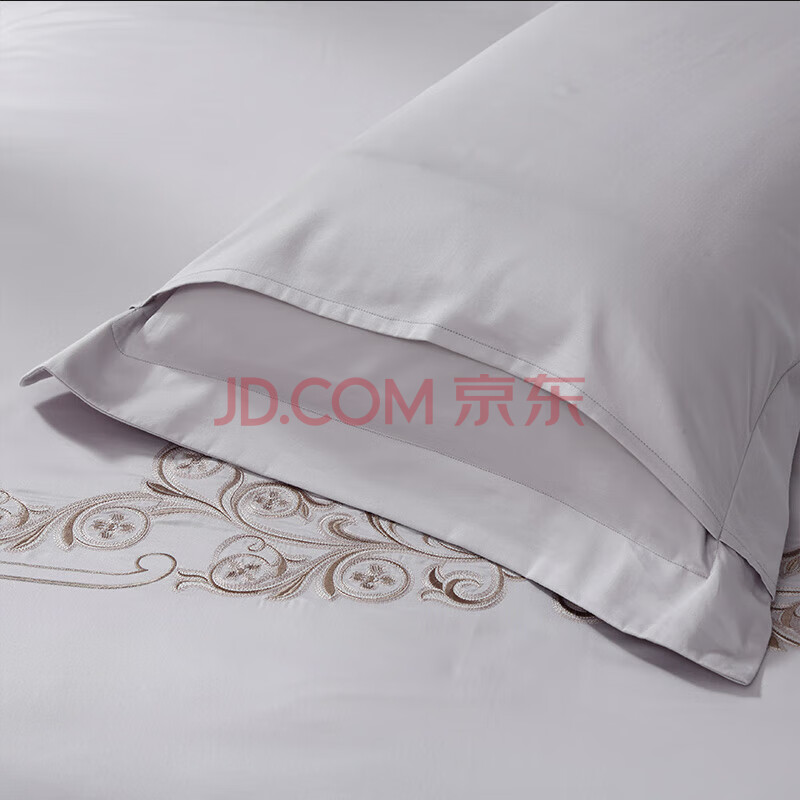 商品相册:富安娜HOTEL系列 四件套60S长绒棉 纯棉贡缎酒店床品套件安妮娜1米5床灰第