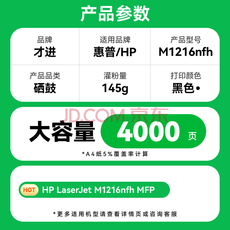 商品相册:才进M1216nfh硒鼓适用惠普Laserjet Pro MFP M1216nfh专用版墨盒M1216打印机易加粉晒鼓激光复印一体机墨粉盒第