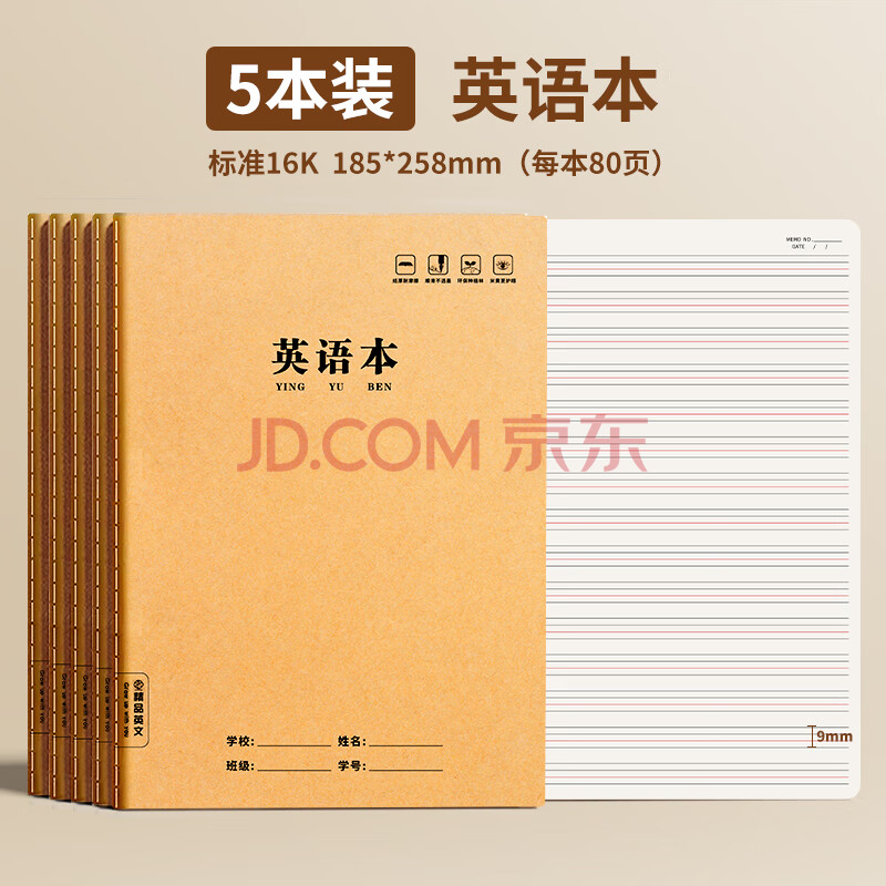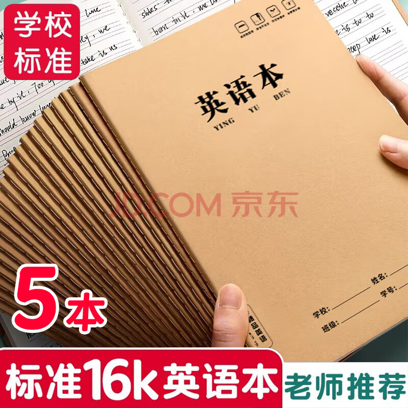 商品相册:舒星16k牛皮英语本小学生作业本72页15行四线三格b5笔记本本子抄写本初中生专用练习本簿开学必备5本装第