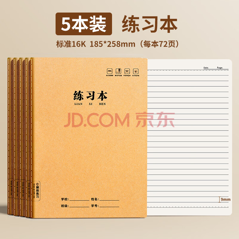 商品相册:舒星16k横线练习本b5牛皮纸作业本小学生初高中专用护眼加厚本子数学学校备课抄写习题开学必备 5本装第