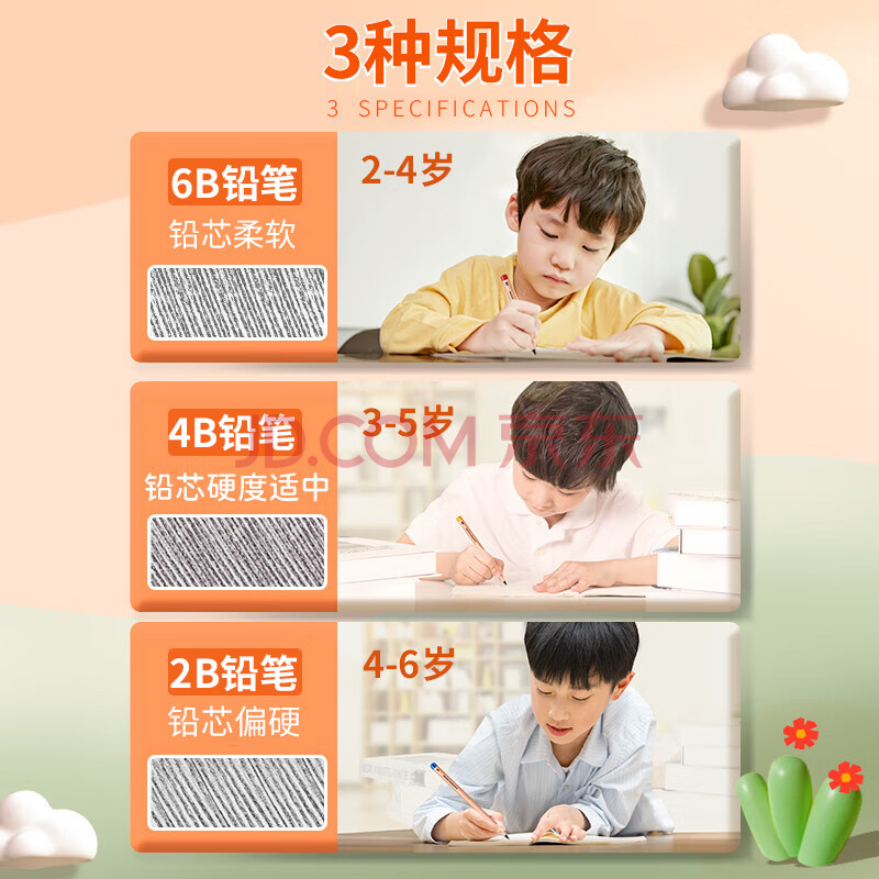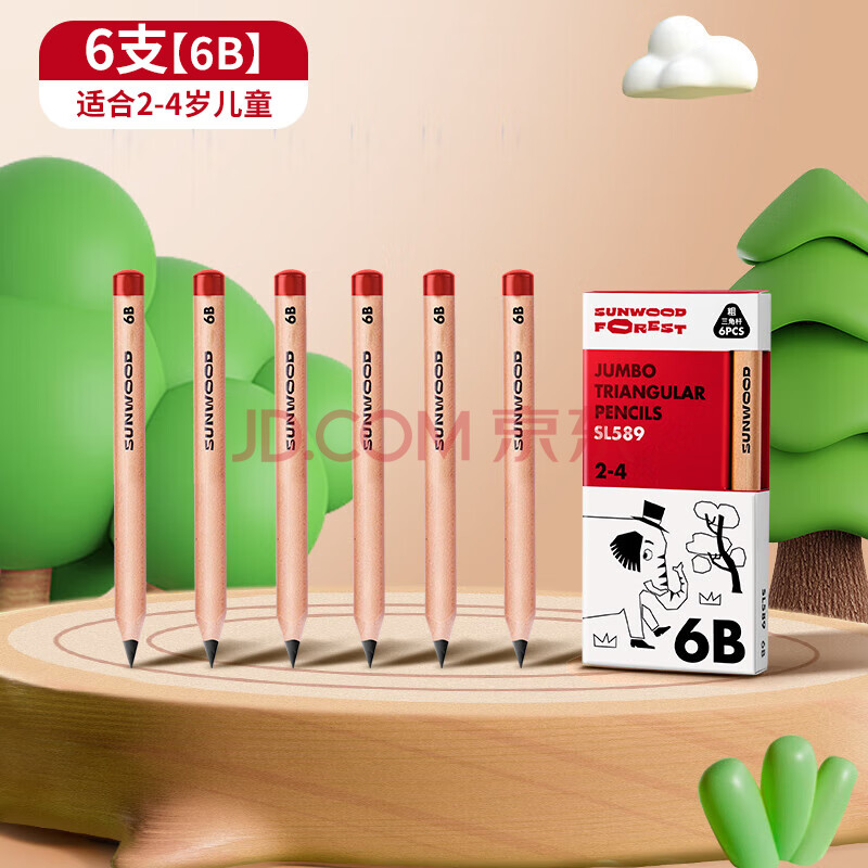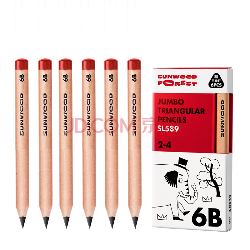 商品相册:三木(SUNWOOD)森林系列 初学者幼儿园儿童小学生 6B三角杆粗短杆铅笔 6支装 SL589第
