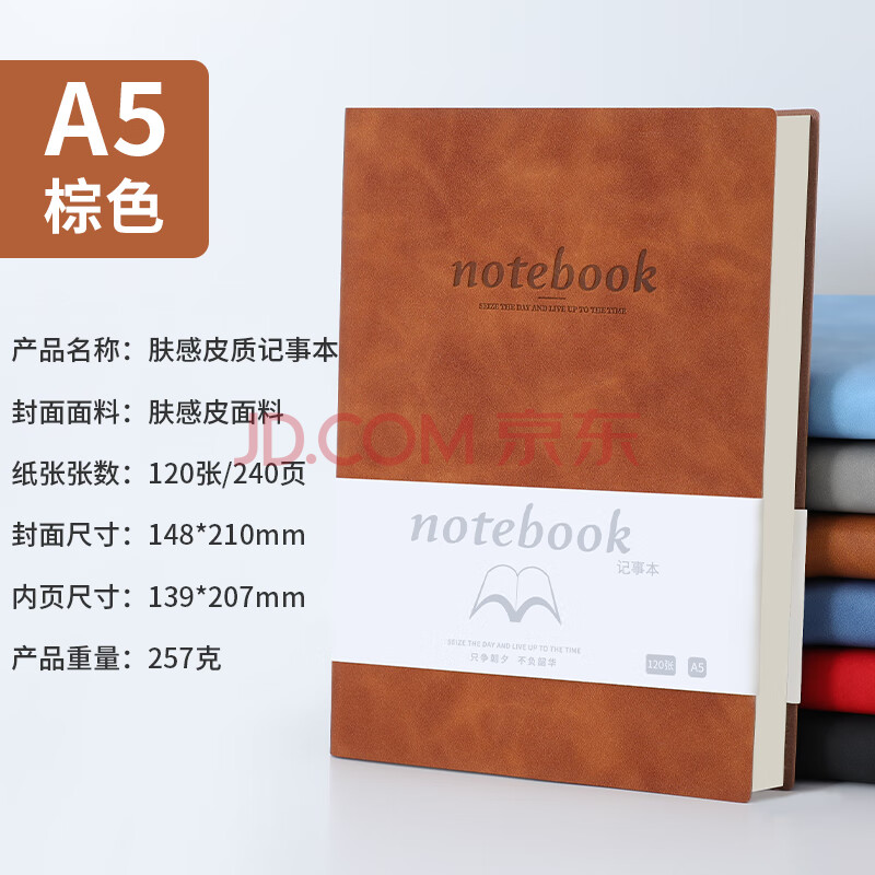商品相册:嘉然恒 商务肤感羊巴皮笔记本本子A5加厚软皮面记事本笔记本子文具高颜值工作日志会议记录本可定制 棕色第